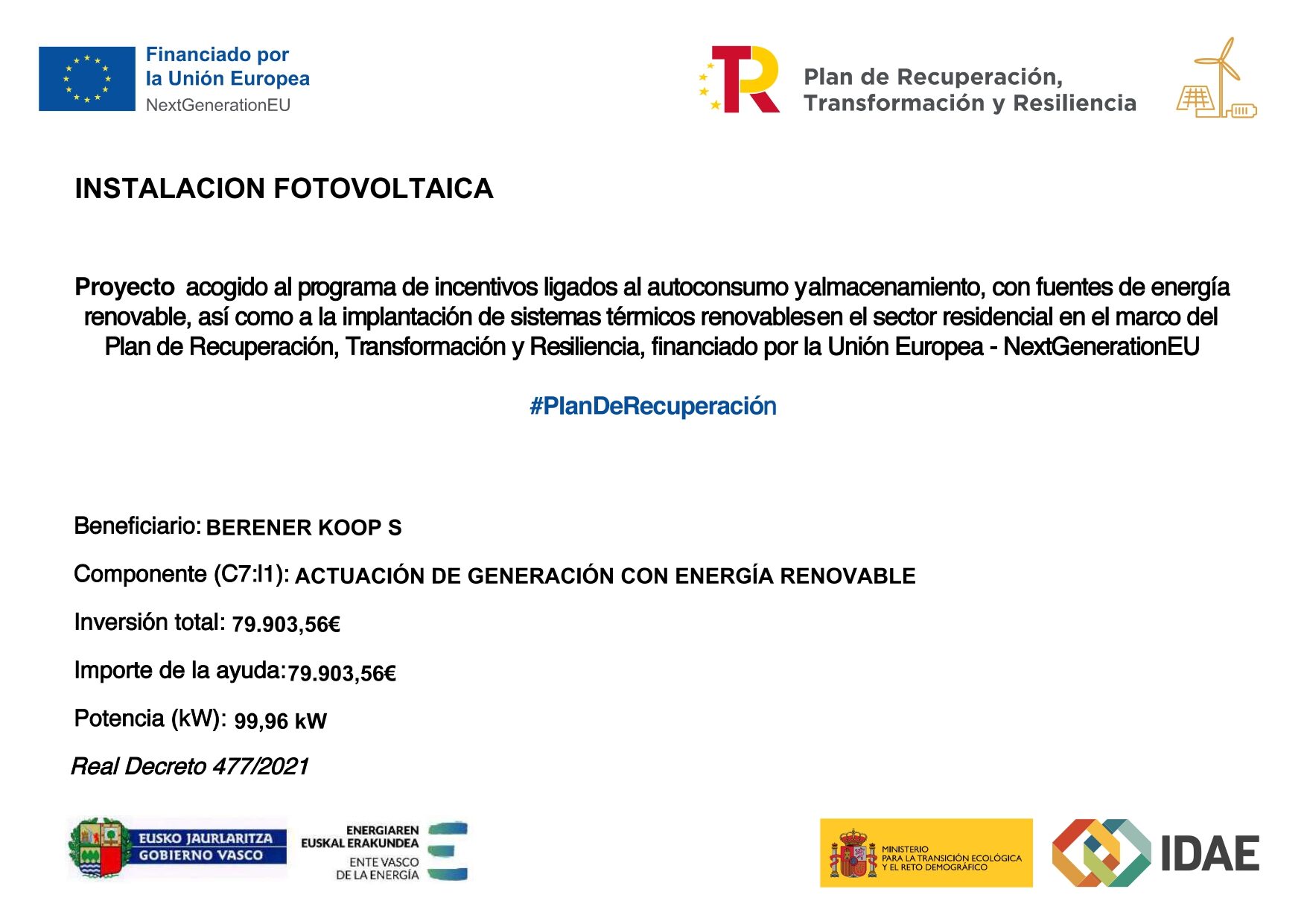 Berenerrek dagoeneko egin ditu eguzki-plaken lehen instalazioak Osintxun eta San Martin eskolako teilatuan. Bazkideek aukera izan dute instalazioetara batzeko, eta epe motzean bukatuko dira egin beharreko administratiboak.